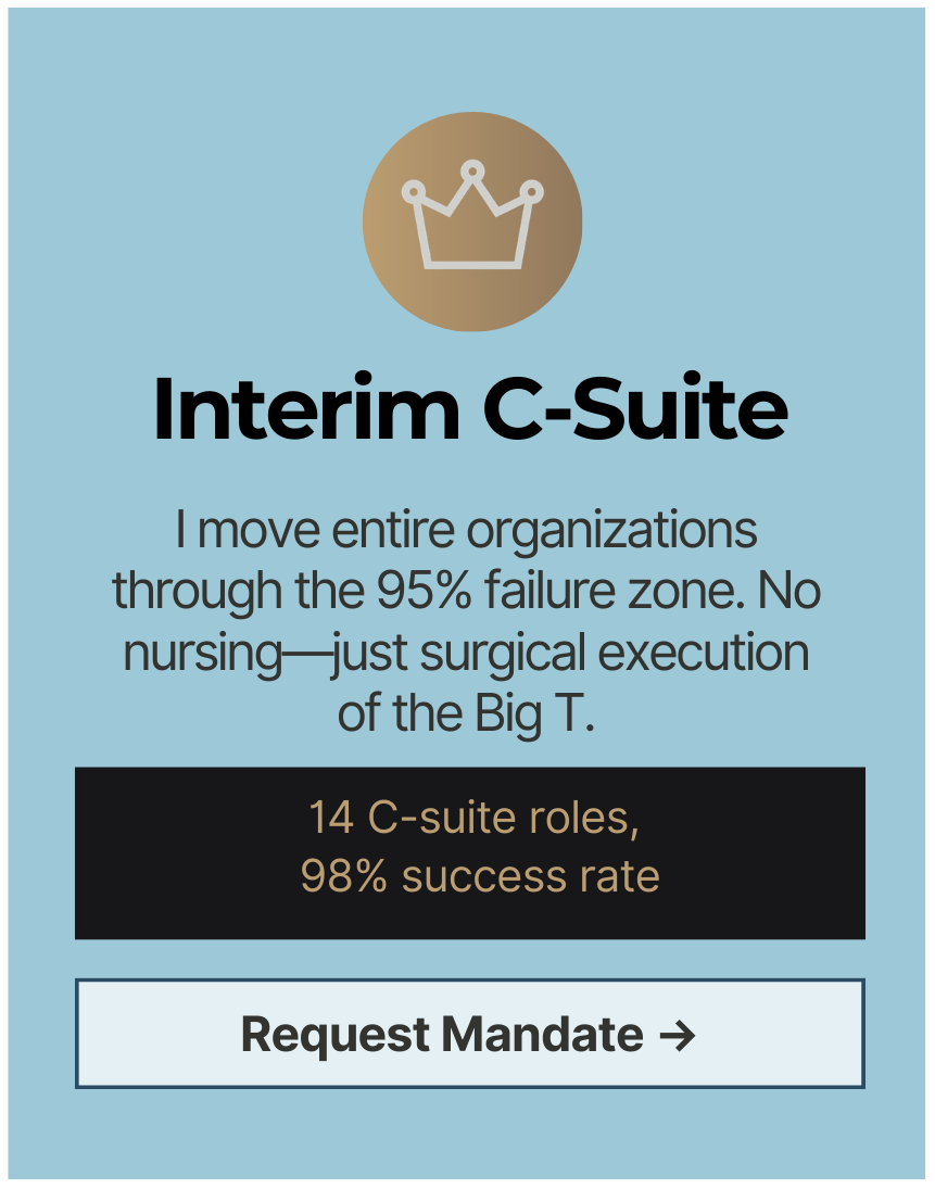 Small t: The 5% you see →Most leaders spend millions to become slightly faster versions of their old, failing enterprises. I install the Venture Operating Model (VOS) that ensures your survival.